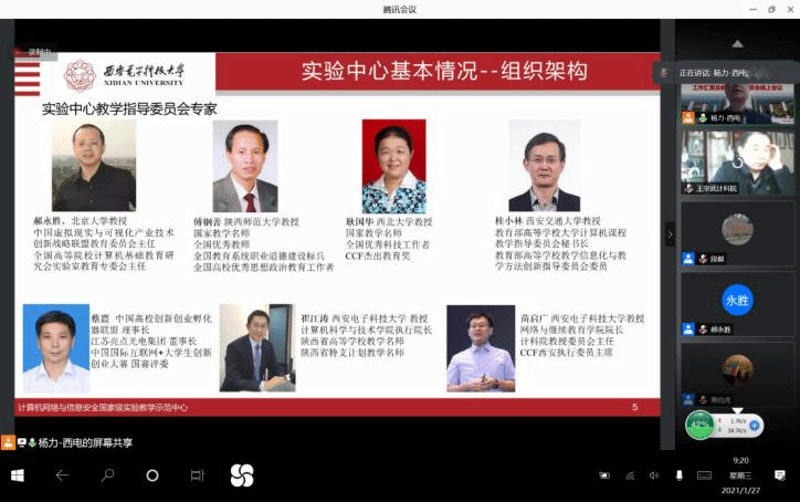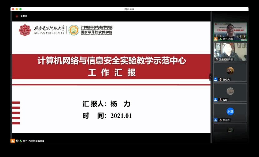 (通讯员 段毅 黄伯虎)1月27日上午,计算机网络与信息安全国家级实验教学示范中心通过腾讯会议举行了“工作汇报及教学指导委员会线上会议”。参加此次会议的教学指导委员会专家有:北京大学郝永胜教授、陕西师范大学傅钢善教授、西北大学耿国华教授、西安交通大学桂小林教授、中国高校创新创业孵化器联盟理事长蔡震、必赢242net官网崔江涛教授和苗启广教授。学校及学院参会代表有:学校实验室与设备处副处长(主持工作)韩卿、学院教学副院长万波,实验示范中心主任杨力、副主任贾文、王宗武、黄伯虎、张跃宇及实验示范中心教师等30余人。本次会议由杨力主任和郝永胜教授共同主持。