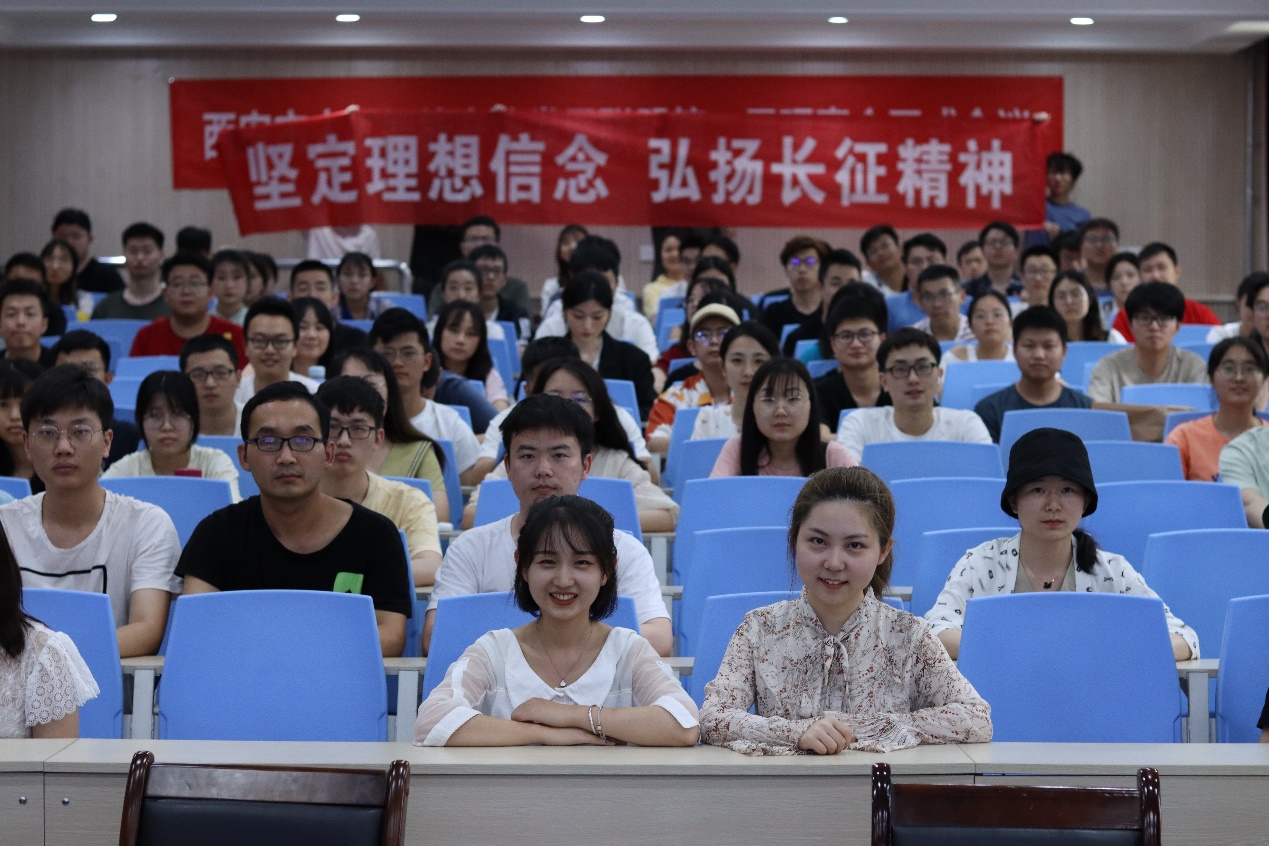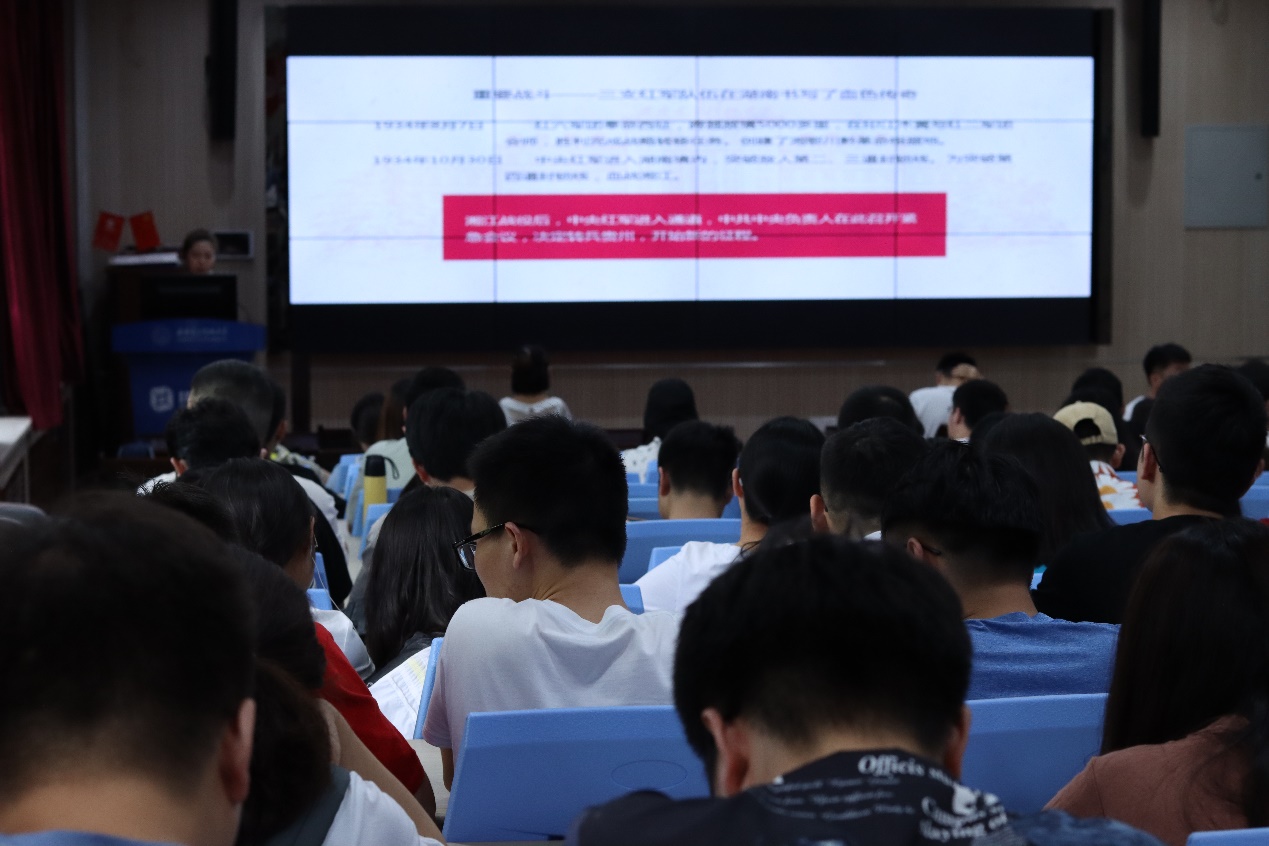 宣讲持续了一个小时,两位宣讲团成员深入浅出的讲解、风趣幽默的语言,引发了同学们的强烈共鸣,激发了同学们学习“四史”的浓厚兴趣。毛泽东同志曾说,革命胜利只是万里长征走完了第一步;习近平总书记也曾说,我们正在进行一场新的长征。作为当代青年大学生,我们更应该坚定理想信念,弘扬长征精神,用奋斗铭刻青春,用拼搏铸就辉煌,走好新时代的长征路!