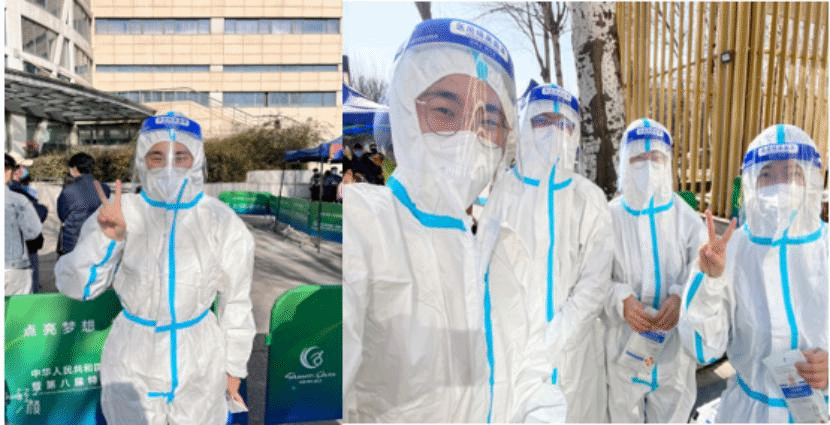 志愿者们穿上防护服为西电加油