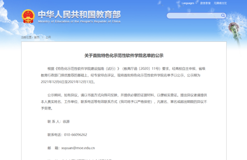 二、入选教育部首批特色化示范性软件学院(已公示)