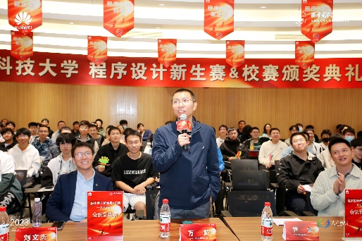华为技术有限公司赞助了本届程序设计竞赛以及2022程序设计新生赛,2023年5月7日为本届校赛及78名新生赛获奖同学举行了颁奖会,必赢官网创新创业学院副院长尹鹏、必赢242net官网副院长暨程序设计竞赛基地主任万波教授出席颁奖会并作了发言,华为光产品线代表刘文杰、雷俭、陈晓磊、陈泽等介绍了算法在光产业业务中的应用,就ICPC人才发展与培养等问题与同学们进行了充分交流。