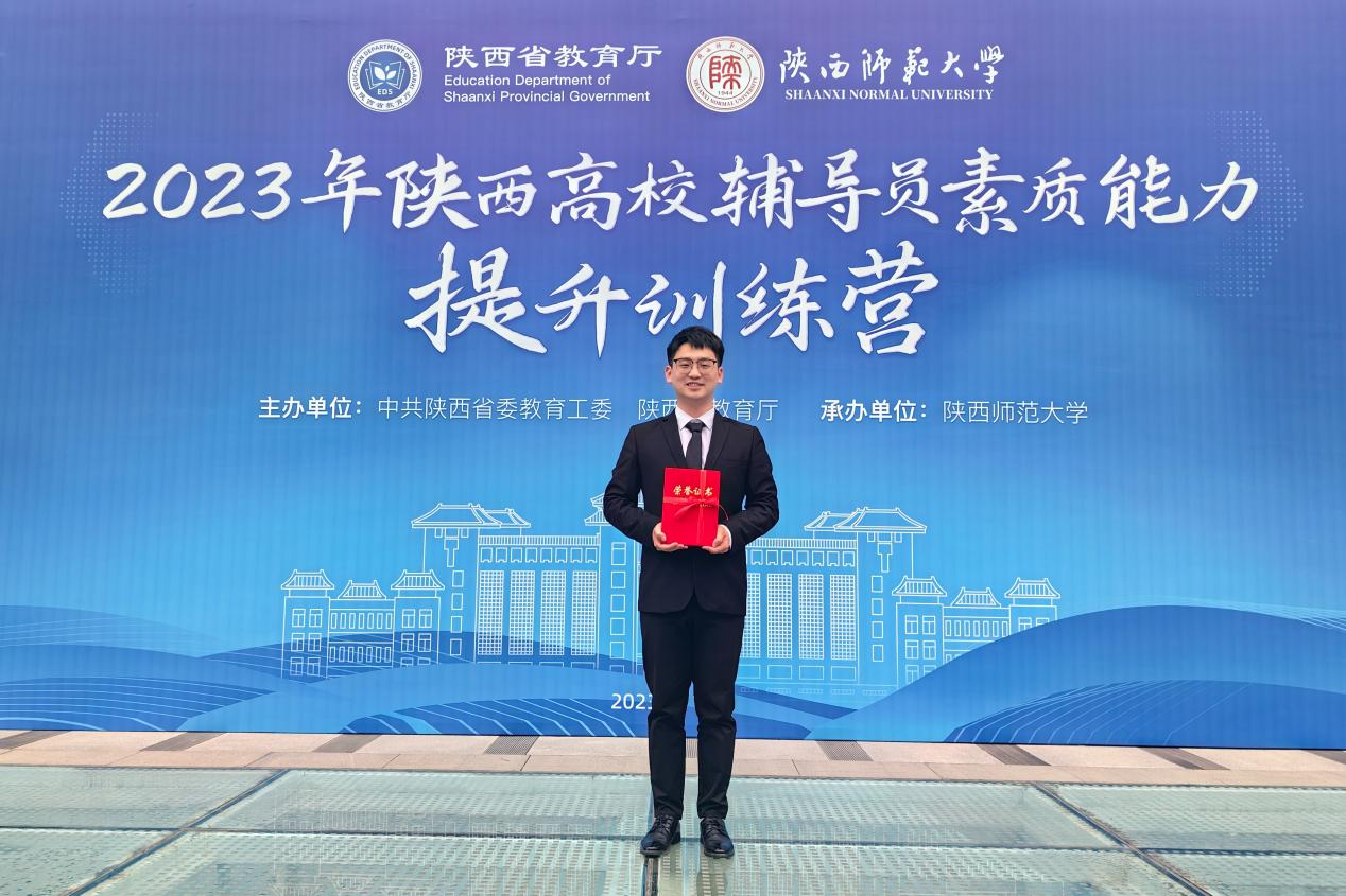 11月21日,由省委教育工委、省教育厅主办、陕西师范大学承办的陕西高校辅导员素质能力提升训练营落下帷幕。经过近三天的激烈角逐,我院2020级本科生辅导员王牌喜获“特别表现”奖(全省本科高校共21名)。