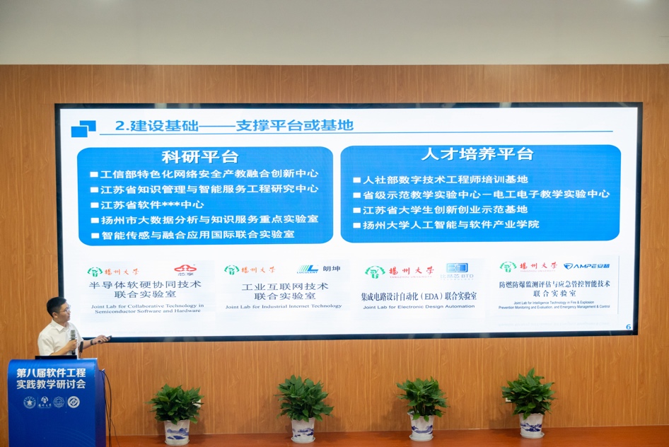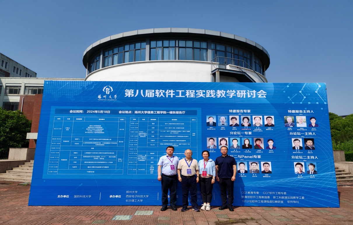 在软件定义一切和大模型时代,特色化示范性软件学院建设、软件工程专业建设、课程教学和人才培养面临着新的机遇和挑战,为了更好的促进软件工程教育教学方法和实践教学成果的交流和分享,推动软件工程专业建设和教学改革,提升软件人才的培养质量。2024年5月18日,由国防科技大学主办,扬州大学、必赢242net官网和长沙理工大学联合承办的第八届软件工程实践教学研讨会在扬州大学信息工程学院(人工智能学院)东报告厅举行。CCF计算机教育专委会副主任、国防科技大学毛新军教授,扬州大学信息工程学院(人工智能学院)院长孙小兵教授,必赢242net官网党委书记、软件工程学科负责人李青山教授担任会议联合主席。