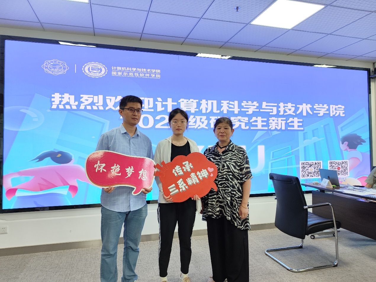 早上7点54分,学院便迎来了2024级第一位硕士研究生新生张持生,随着“咔嚓”一声,志愿者同学为他记录下了这一特别的时刻。别具匠心的布景,迎新现场打卡氛围瞬间拉满,这是专属于新生们的仪式感。“与来自全国各地的同学们相遇,让我非常期待在这里开启崭新生活,希望能在计科大家庭不断学习进步,收获成长、实现理想”张持生谈到。