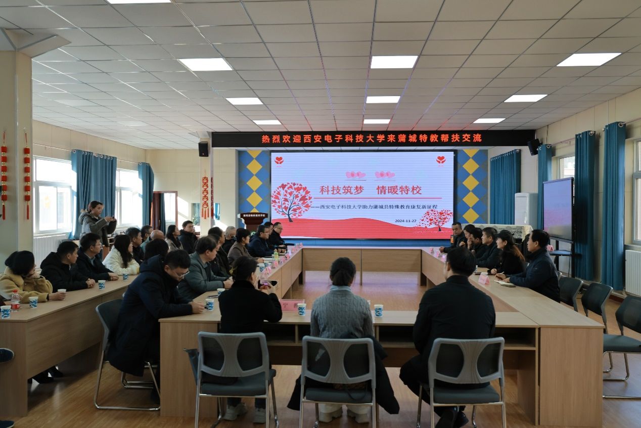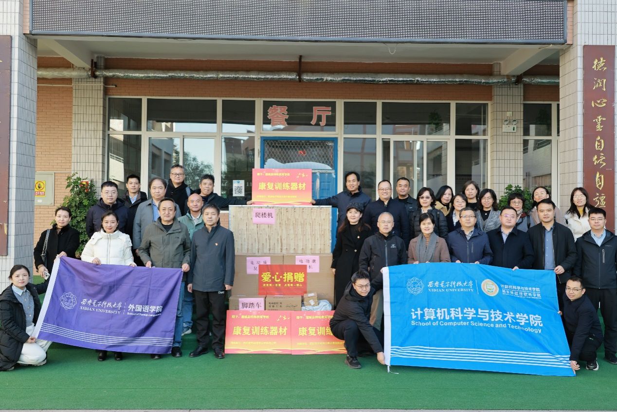 (通讯员 同榛 宁静)11月27日下午,西电必赢242net官网党委书记李青山、外国语学院党委书记徐战利分别带队,两学院领导班子成员、党支部书记代表、团委书记、教师代表等赴蒲城县特殊教育学校开展帮扶交流活动,本次活动是两院联动第二年来到蒲城县特殊教育学校。校工会常务副主席吴秀霞,与我院长期友好合作的西安葡萄城信息技术有限公司(以下简称“葡萄城公司”)党支部副书记、人事行政总监、工会主席卢智峰,党支部宣传委员、招聘经理曹巧,闫家村驻村第一书记李攀等共同参加了活动。