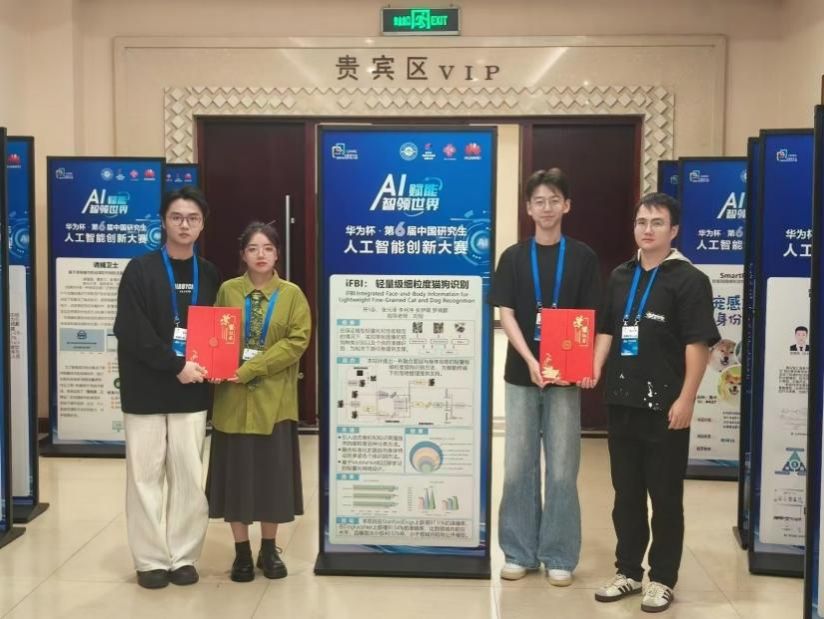 必赢242net官网刘刚老师指导,研究生张元泽、李柯序、张伊萌、罗锦鹏组成的参赛团队“开Π队”,在学校选拔赛中脱颖而出,获得代表学校参加决赛的机会。决赛中,队员们沉着应对,战胜多路强手,其参赛项目“iFBI:轻量级细粒度猫狗识别”获国家一等奖,及华为专项二等奖。通过比赛展示了我院师生的研究实力和创新能力,谈及比赛感受时,“开Π队”队长张元泽同学表示:“通过这次比赛,我们不仅加深了对人工智能技术的理解,还锻炼了团队协作和解决实际问题的能力。在快速变化的比赛环境中,我们学会了如何高效沟通、合理分工,最终取得了令人满意的成果。”
