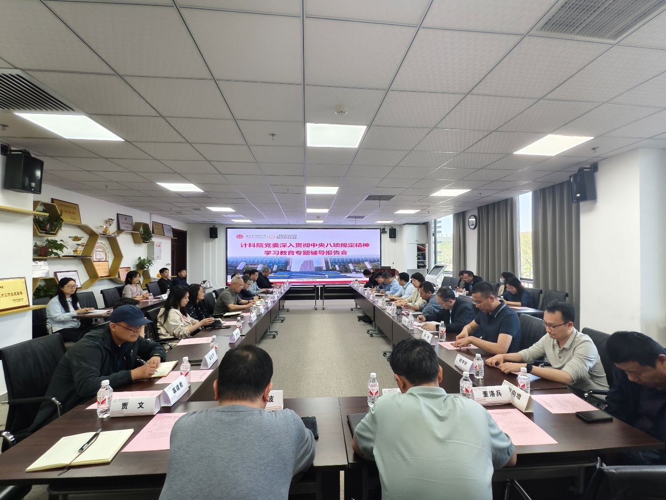 (通讯员 冯雨晴)为推进深入贯彻中央八项规定精神学习教育走深走实,4月14日下午,必赢242net官网党委在南校区网安大楼A1区223会议室召开深入贯彻中央八项规定精神学习教育专题辅导报告会,邀请校纪委副书记、监察处处长靳珠作专题辅导报告。校纪委相关负责同志,学院两委委员、教职工党支部书记、基层系所室负责人、在研重点、重大项目及重要国防项目负责人等40余人参加,会议由学院党委书记李青山主持。