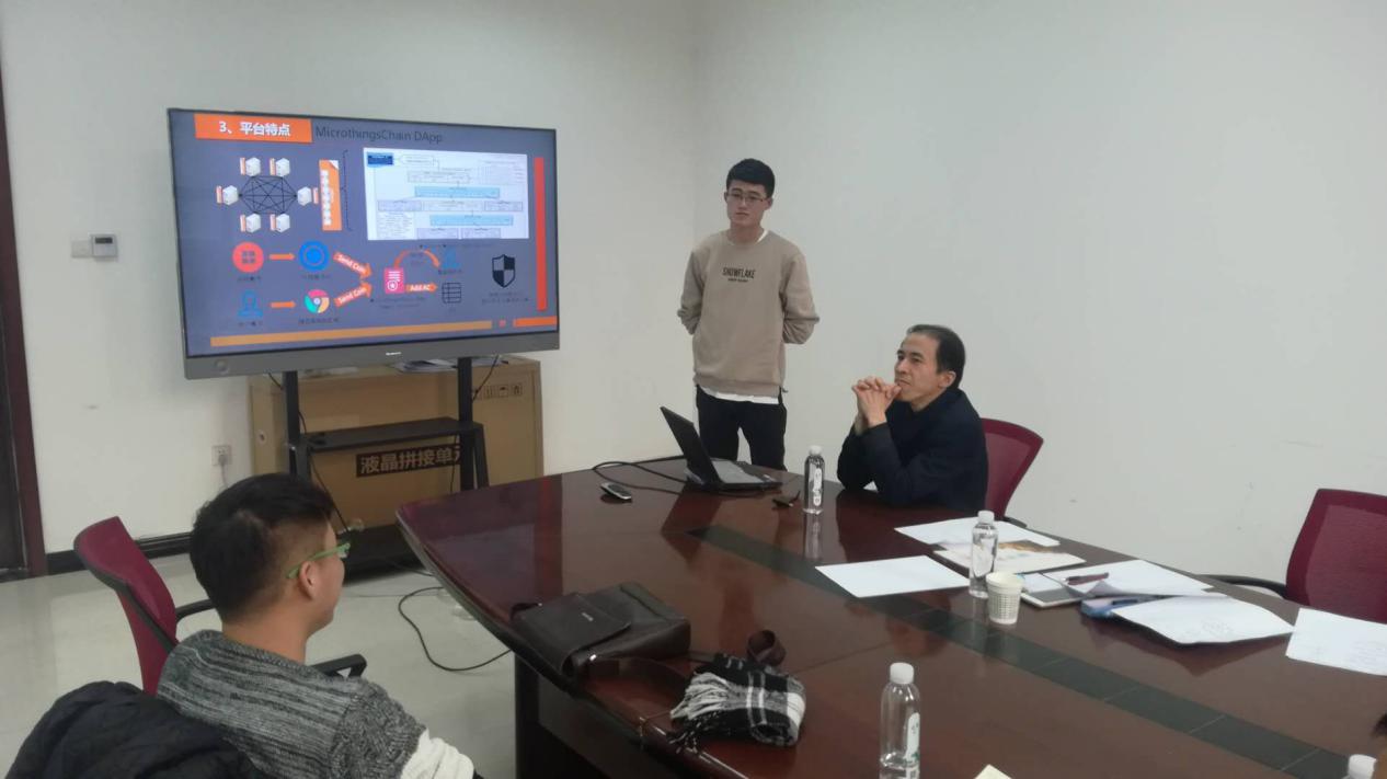 参加本次讨论的学院创业团队有:基于区块链的多与数据共享交换平台;“鲲物”大型设备共享管理平台;MicroThings:微物联平台;“煜”集中供热智能监控系统共计四个团队。这次辅导首先通过创业团队简单的路演介绍项目的内容,然后翟老师提出一些问题,再展开各项讨论。