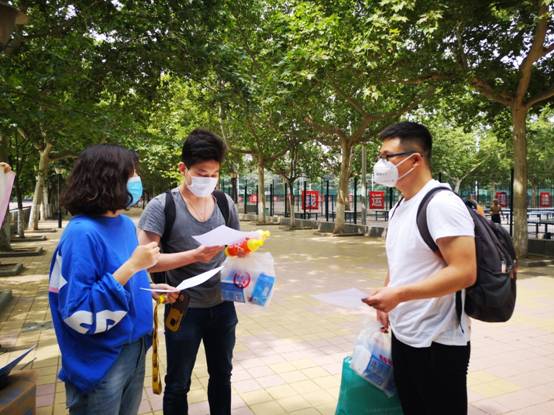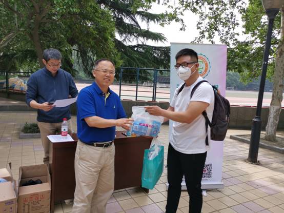 李青山、崔江涛在学院研究生返校接待点与学生交流
