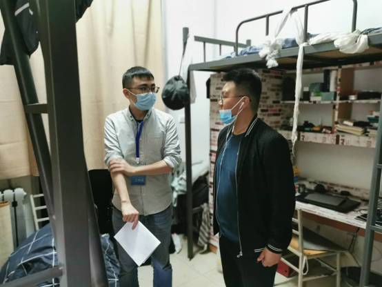 李青山、张莹莹走访学生宿舍,问询学生毕设进展与就业情况