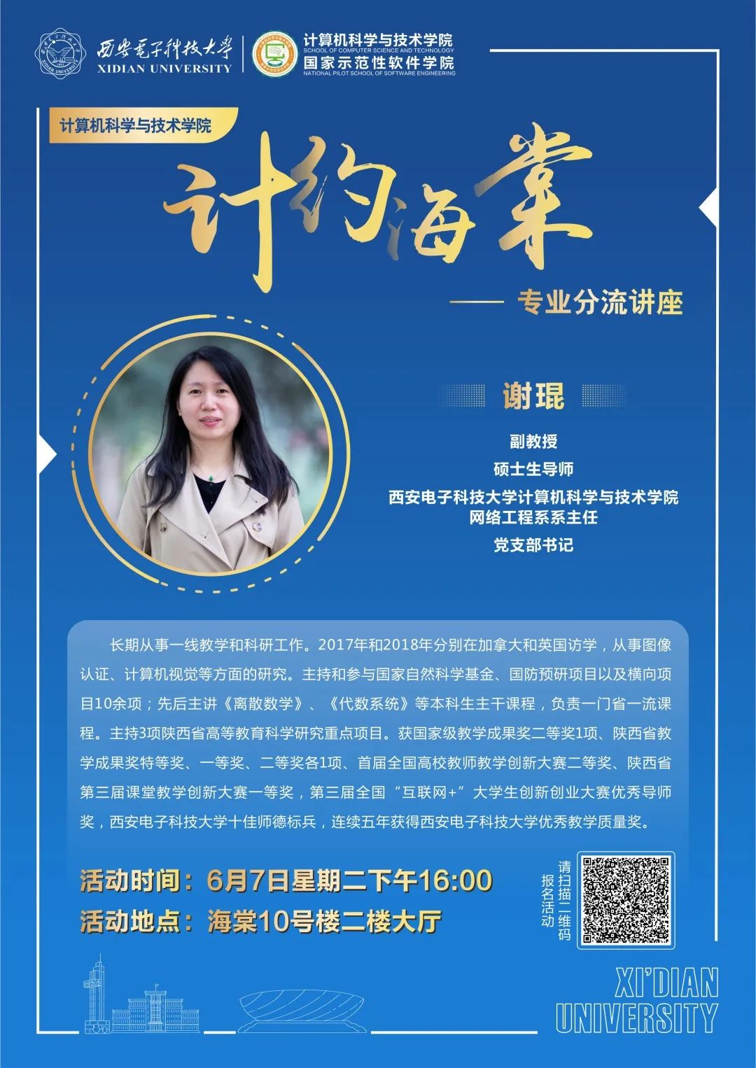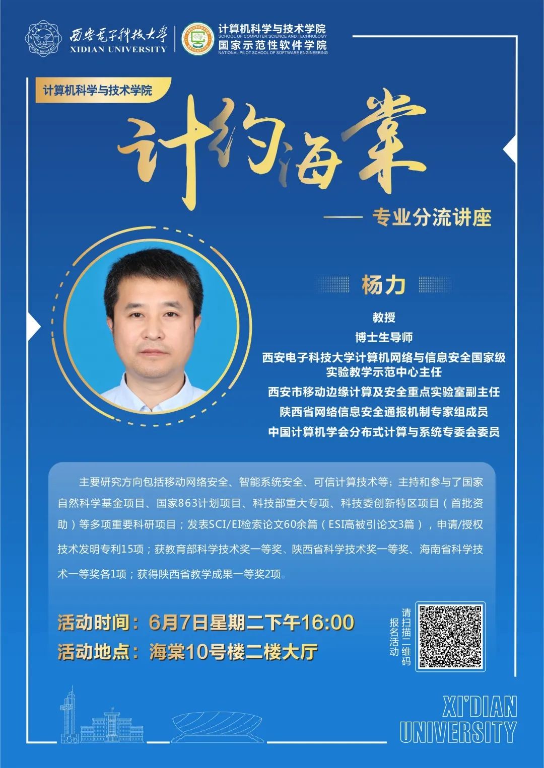 本次活动将通过“西电计科学工”视频号同步直播,欢迎同学们线上线下积极参加。