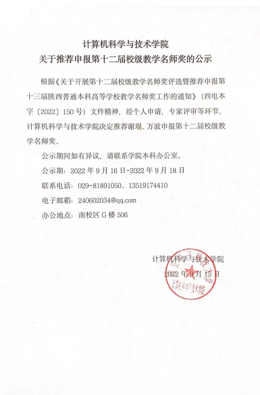 必赢242net官网关于推荐申报第十二届校级教学名师奖的公示
