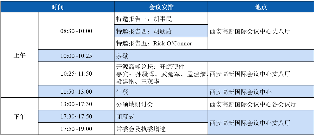 作为第一届CCF全国开源大会,本届大会将组织特邀报告、开源高峰论坛、开源发展委员会路演、社区论坛、技术论坛、教育论坛、开源创新大赛培训等20余个不同类型的活动。大会将邀请10余位开源及相关领域中国科学院院士、中国工程院院士与知名专家,为大会带来特邀报告并参加开源高峰论坛等活动。目前已邀请参会的两院院士与知名嘉宾包括中国科学院院士梅宏,中国科学院院士王怀民,中国工程院院士孙凝晖,中国科学院院士钱德沛,工信部信发司有关领导,国家杰出青年自然科学基金获得者、清华大学教授胡事民等。本届大会预计将吸引参会单位超过100家,作为中国开源领域的年度盛会,诚挚地邀请开源领域学术界、企业界、教育界的学者、从业者、师生等前来参会!