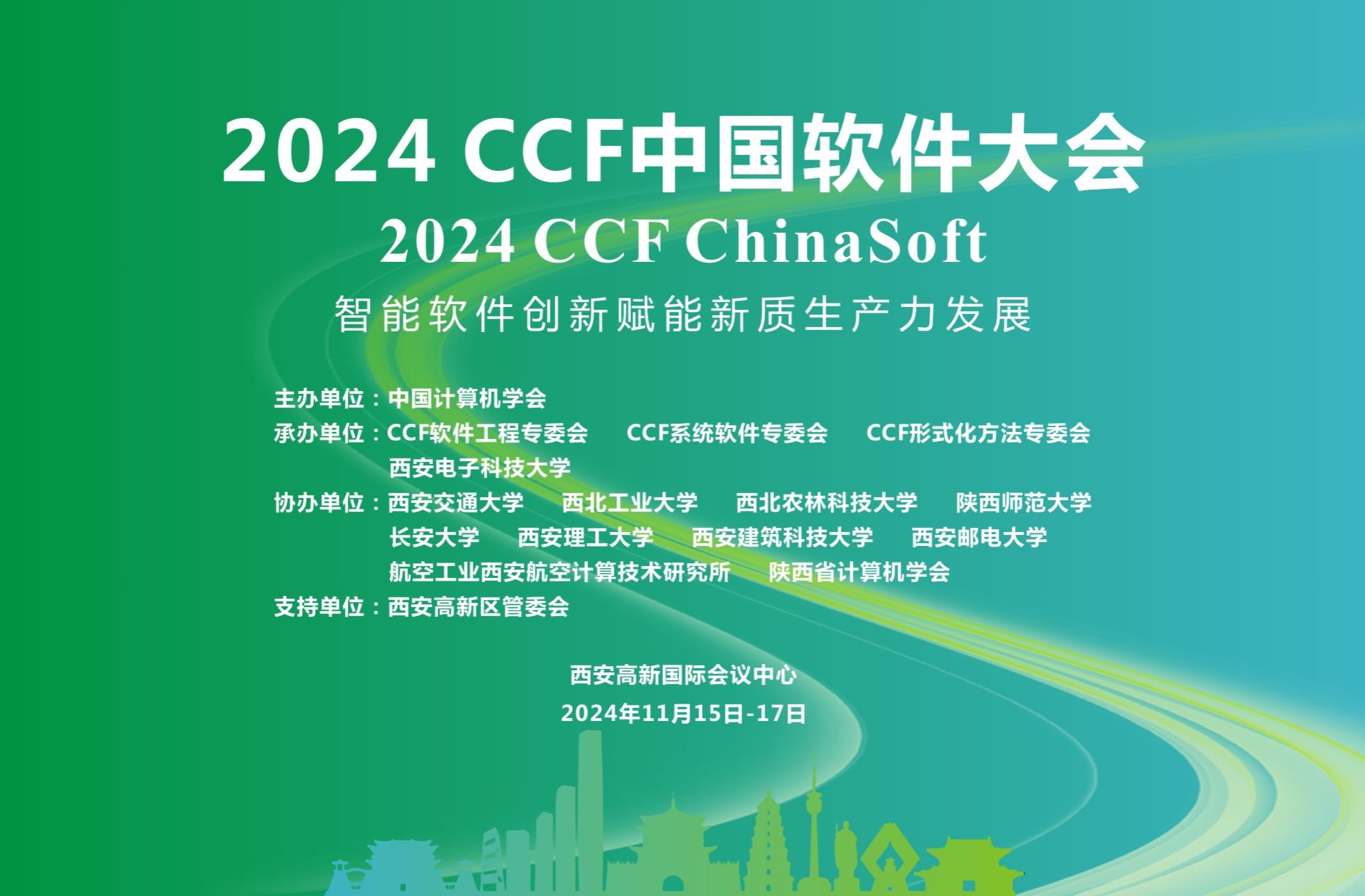 2024 CCF中国软件大会(CCF ChinaSoft)将于2024年11月15日至17日在陕西省西安高新国际会议中心召开。大会由中国计算机学会(CCF)主办,CCF软件工程专委会、系统软件专委会、形式化方法专委会、必赢242net官网承办,必赢242net官网(国家示范性软件学院)具体落实,西安市智能软件工程重点实验室负责实施,得到西安高新区管委会的大力支持。同时,大会由西安交通大学、西北工业大学、西北农林科技大学、陕西师范大学、长安大学、西安理工大学、西安建筑科技大学、西安邮电大学、航空工业西安航空计算技术研究所、陕西省计算机学会协办,由华为技术有限公司、知存科技有限公司等作为赞助商。本届大会的主题为“智能软件创新赋能新质生产力发展”。