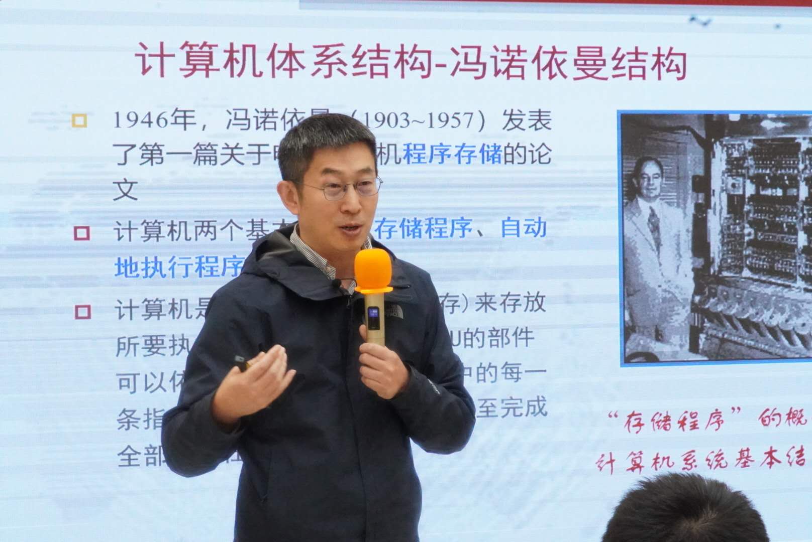 围绕计算机发展历程,崔院长从图灵机和冯·诺依曼体系讲起,结合自身经历告诉大家如何从事科学研究,如何感受科研魅力。他列举了“吊舱软硬件控制系统”和“分布式区块链数据库”两个研发实例,让同学们更为直观地了解操作系统、内存管理、编译优化、I/O、驱动程序、文件与数据库系统等相关概念。一个个研究热点让大家清晰认识到计算机专业的发展方向,同时也深刻领会到科研工作者严谨治学的态度以及科研攻关道路的艰难与收获。