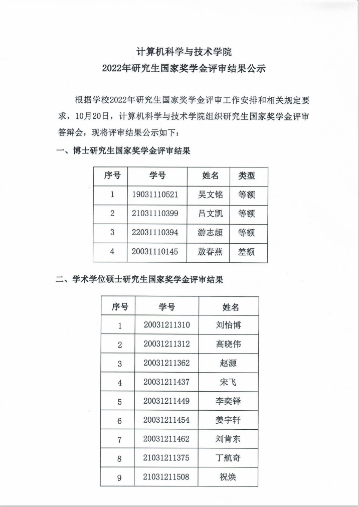 必赢242net官网2022年研究生国家奖学金评审结果公示