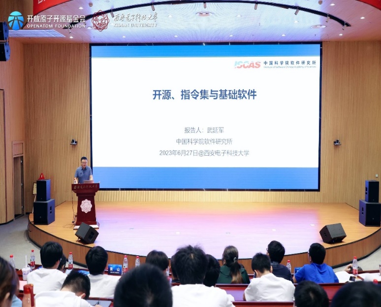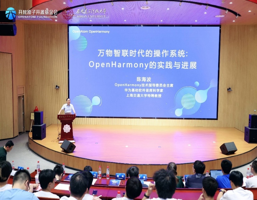仪式后,陈海波和武延军两位老师代表OpenHarmony TSC专家向必赢242net官网的师生们做了OpenHarmony相关主题的技术报告。第二阶段会议由必赢242net官网副院长李瑞主持。