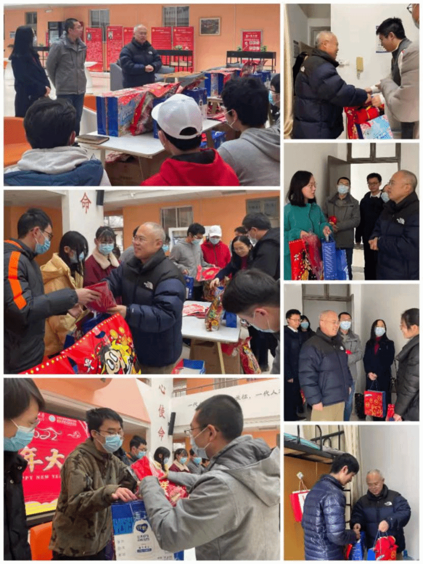 临近除夕,为了让留校的同学们过好年,学院为同学们准备了满满的惊喜,送来新春的祝福。在南校区丁香11号楼大厅,学院党委书记李青山、副书记张莹莹、副院长万波,来到学院迎新春活动现场,和一线学工干部一起为同学们发放了新春大礼包,竹园1号书院副书记吴微参加了慰问活动。李青山代表学院班子为同学们送上新春的祝福。他谈到,因为疫情、学业等原因,今年部分同学留校过年,为了让同学们能过好这个年,学校努力做好各种保障,用心开展丰富的活动。希望同学们积极参与,祝愿大家在学校度过一个开心难忘的新年。同学们纷纷表示感谢,也对各位老师表达新年的祝福。