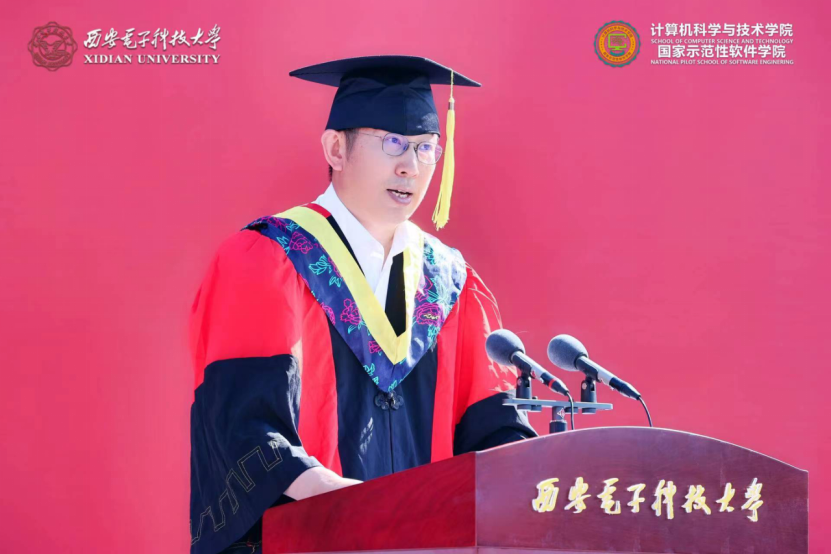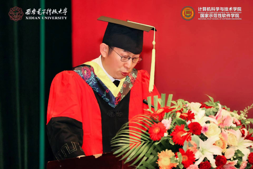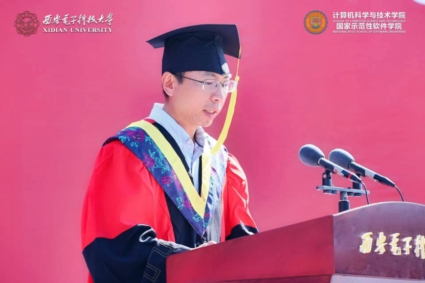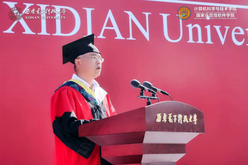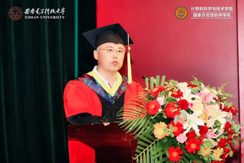 学院执行院长崔江涛教授深情寄语2022届毕业生,他谈到2018级同学以青春“小我”战疫情大考,逆风而行,主动担当;关键时刻,学生党员挺身而出,更多的同学受到感染积极加入一线志愿者工作,彰显“无我”初心。18级同学与重组后的必赢242net官网共成长,与历届西电人一起不懈奋斗,共筑院校荣光。他对同学们提出三点希望,第一是在两个百年的历史交汇时期“定位坐标”,立大志、明大德、成大才、担大任,强化终身学习能力,提升核心竞争力,把个人发展与国家命运相结合,将个人理想融入到中华民族的事业中;第二是在互联网的时代浪潮中坚守“慎独克己”,在信息洪流中严守计算机伦理,守护自己的精神家园,弘扬社会正能量;第三是在百年未有之大变局中乘风破浪,深刻认识到我国所面临的内外环境,认识到计算机行业发展面临的挑战,以解决实际问题为目标和突破口,知难而上,向“卡脖子”技术问题发起冲击,投身新一轮数字革命的热潮中。最后,崔江涛寄语毕业生,以青春之“小我”,践行“无我”初心,书写时代之“大我”,在各自的岗位上不断努力,把青春奉献给国家和民族,让青春闪耀光彩。