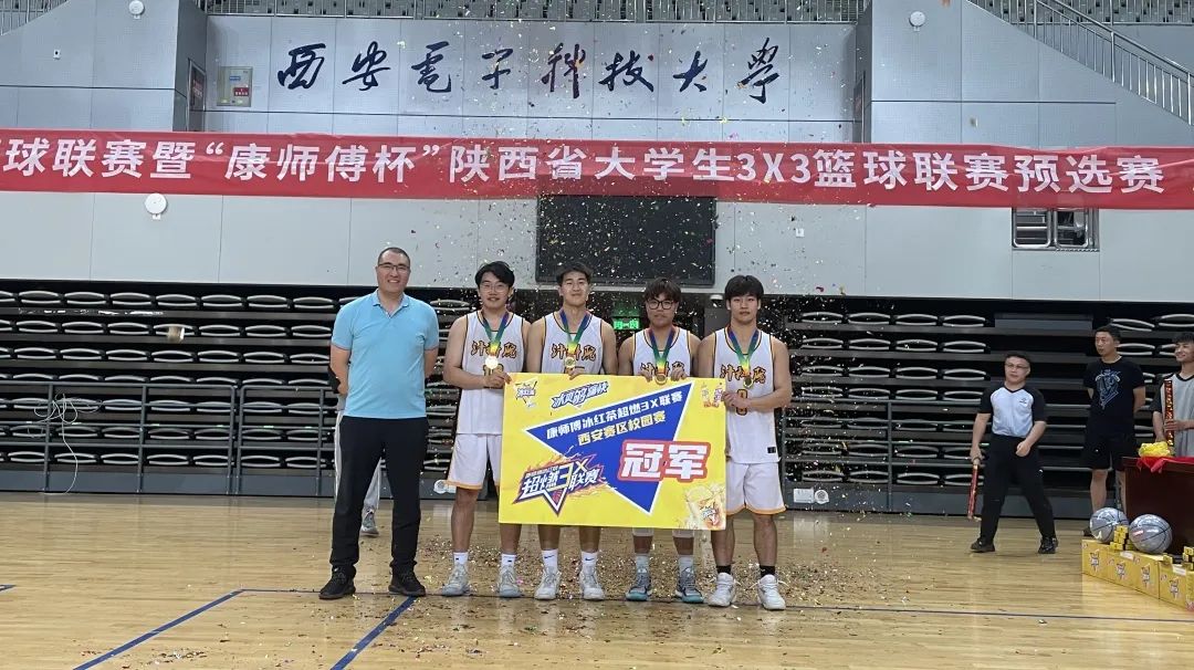 (通讯员 袁权)5月29日下午,必赢242net官网2022年“西军电杯”三人篮球联赛暨“康师傅杯”陕西省大学生3X3篮球联赛预选赛,经过两天赛程在南校区远望谷体育馆落下了帷幕。由余楷、张凯歌、金熙、谢家齐四名同学组成的必赢242net官网男篮队以全胜战绩挺进总决赛,并在与电院战队的激烈角逐中以15-5比分赢得决赛、捧得冠军,并将代表必赢官网参加陕西省大学生篮球联赛。必赢242net官网也喜获该联赛团体总分一等奖。
