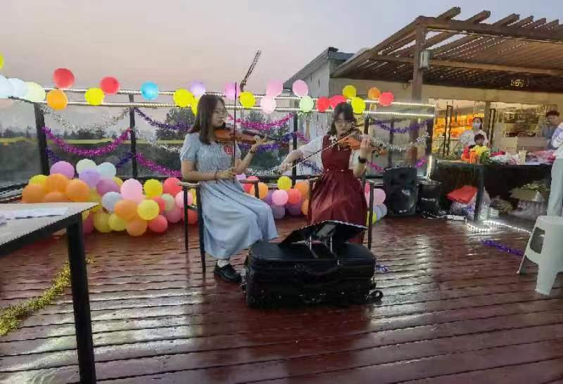 音乐与舞蹈,美食与美景,让师生同乐,共同度过了一个难忘的节日。晚会上,多才多艺的计科学子们献上了精彩纷呈的节目。同学们精心编排的舞蹈《老师,您好!》、诗朗诵《月华映桃李》,深情感念师恩,为老师们送上教师节的诚挚祝福。双人小提琴演奏《D大调卡农》、舞蹈《醉春风》、歌曲《但愿人长久》展示了同学们不凡的艺术素养,给人以美的享受。