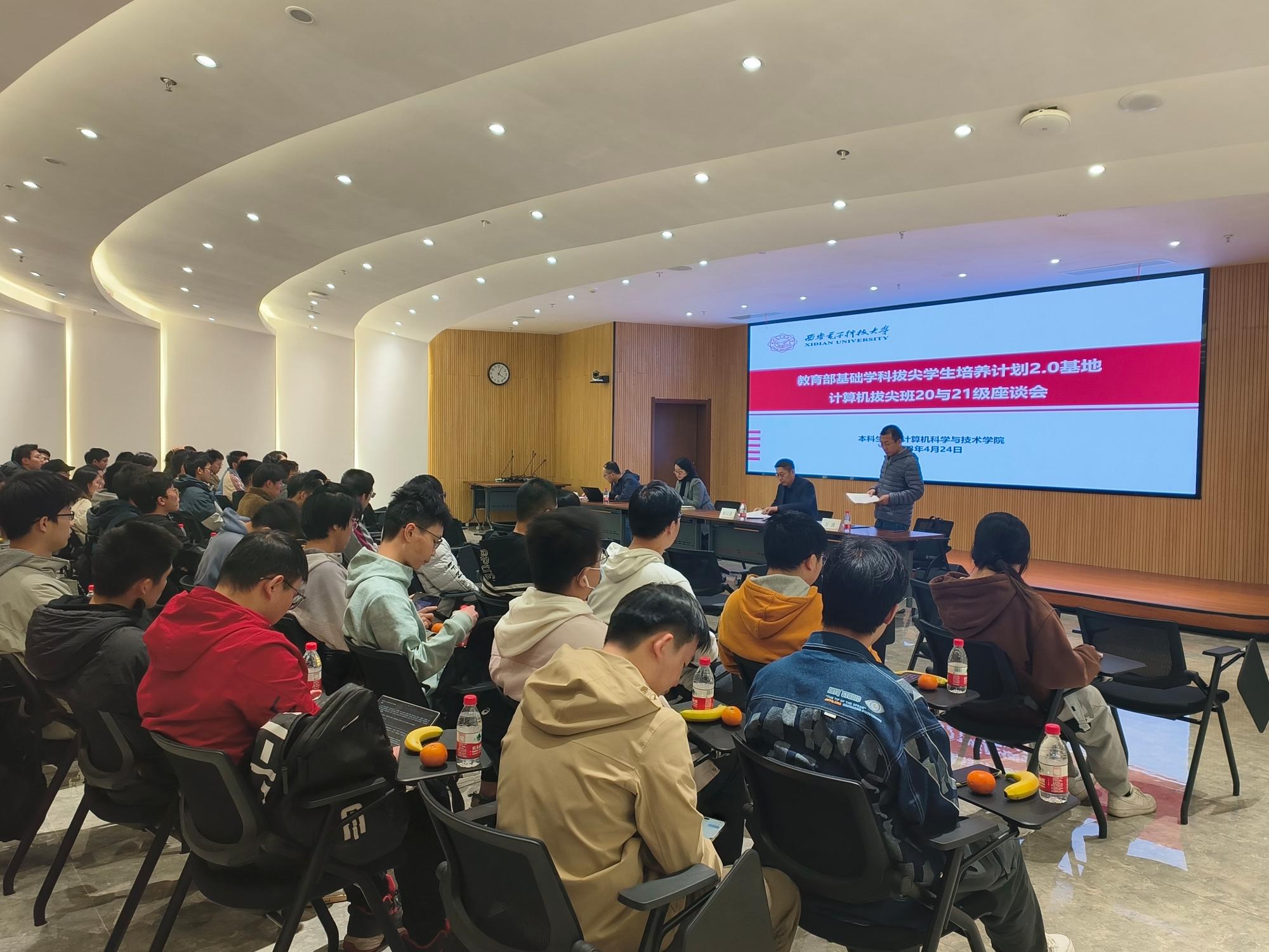 (通讯员 王小兵)为贯彻落实“全面提高人才自主培养质量,着力造就拔尖创新人才”二十大精神,根据学校第十三次党代会拔尖创新人才培养工作部署,4月24日下午4点,计算机拔尖班2020级与2021级学生座谈会在南校区网安大楼会议中心103报告厅召开。本科生院副处长杨敏,必赢242net官网执行院长崔江涛,副院长万波,计算机拔尖班负责人王小兵参加。本次座谈会由必赢242net官网与本科生院共同举办,旨在深入调研拔尖班特性需求,全面落实立德树人根本任务,推进学校拔尖创新人才培养工作,提高人才自主培养质量,打造“不设天花板”的拔尖人才培养空间。