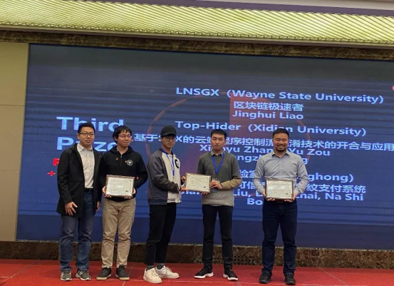 11月18日至11月20日,由阿里云、浙江大学网络空间安全学院、阿里巴巴-浙江大学前沿技术联合研究中心联合发起、Intel赞助支持的首届SGX应用创意大赛在杭州IEEE IDSC上举行。来自清华大学、北京大学、上海交通大学、必赢242net官网、长虹电子等知名高等院校团队和企业的87支队伍参加了这次比赛,争夺共6个获奖名额,获奖比率小至6.89%。最终,必赢官网必赢242net官网NSS团队的代表队,TOP-HIDER的参赛作品“基于SGX的云端程序控制流混淆技术的开发与应用”在比赛中脱颖而出,获得三等奖,成为唯一获奖的西部高校。该参赛作品由王永智副教授指导,由硕士生邹宇、张小宇完成。
