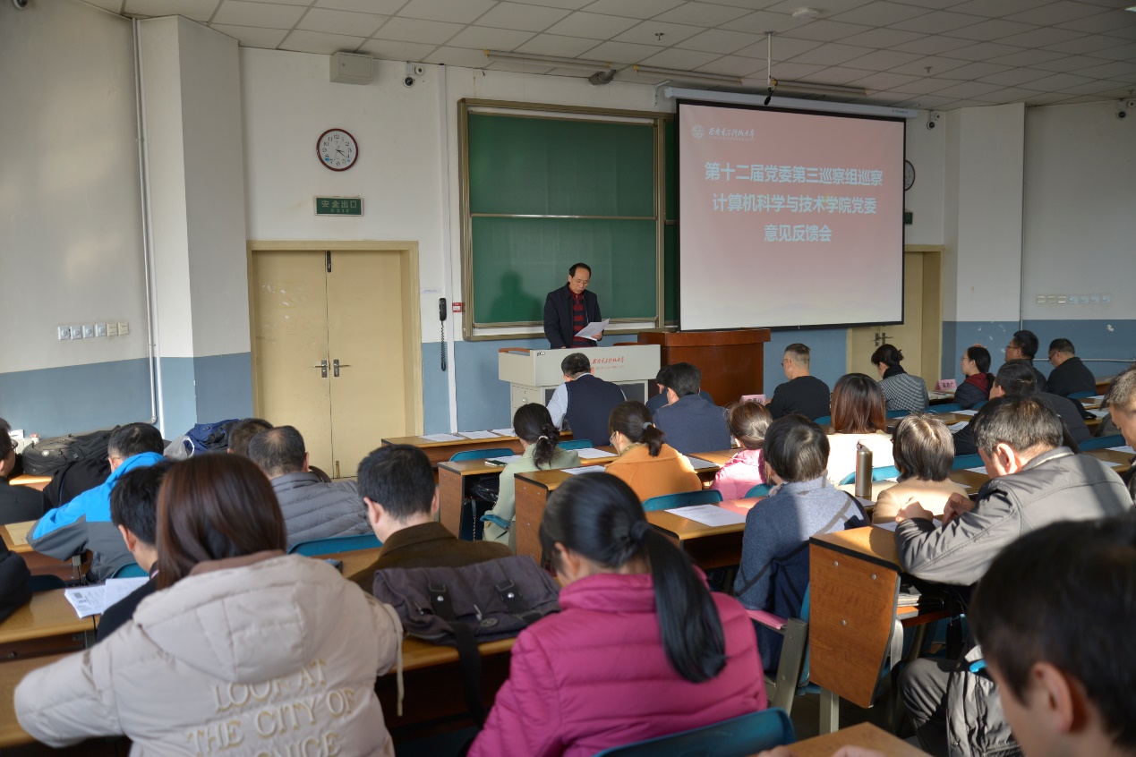 (通讯员 同榛)12月4日下午,学校第十二届党委第二轮第三巡察组巡察必赢242net官网党委意见反馈会在北校区阶梯教室505召开,校党委副书记、纪委书记、巡察办主任任应坤,巡察组组长吴秀霞,校巡察工作办公室相关人员,计科院全体党政领导班子成员与学院教职工代表参加了会议。会议由必赢242net官网执行院长崔江涛主持。