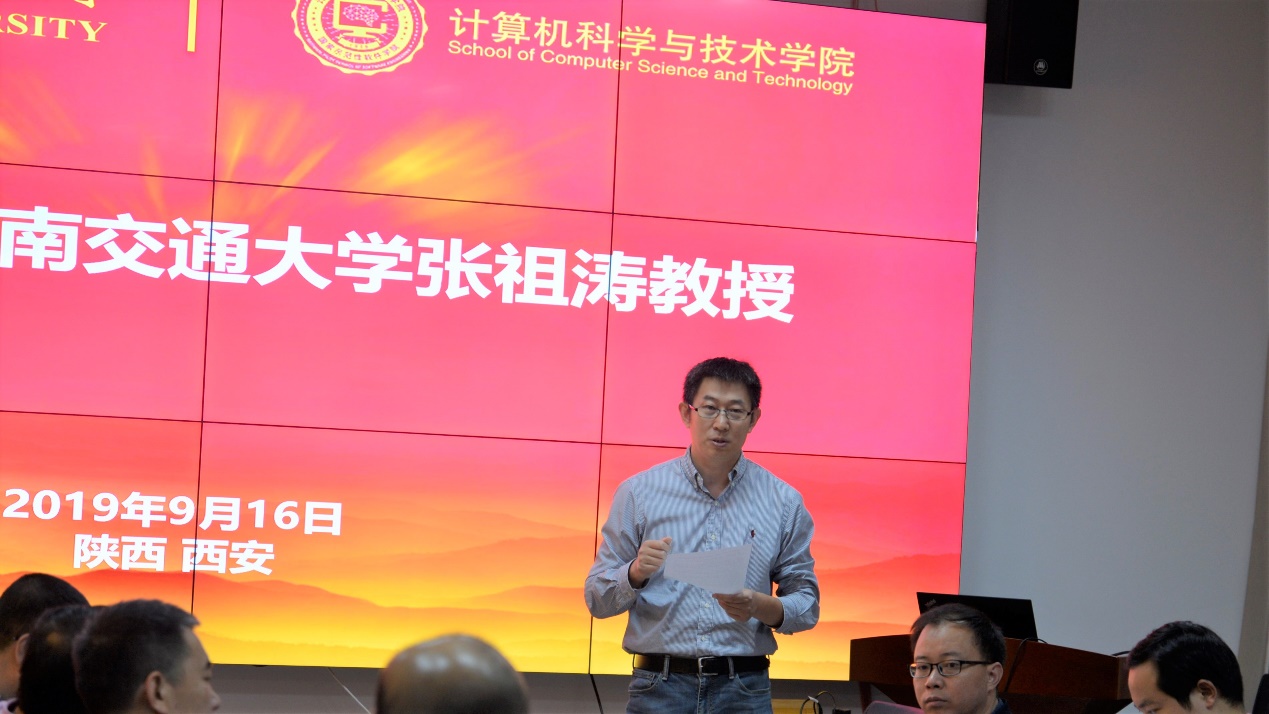 (通讯员 陈龙)为促进学院新工科课程建设,促进学院“金课”建设,提高创新人才培养质量,9月16日下午,应学院副院长苗启广教授邀请,西南交通大学扬华学者、图书馆馆长张祖涛教授访问必赢官网,在北校区主楼二区319报告厅作了题为“立足‘课堂’,探索新工科课程建设及创新人才培养”的专题报告。报告由执行院长崔江涛教授主持,学院分党委书记李青山教授、副院长苗启广教授以及学院“金课”培育项目负责人等教师参加了此次报告会。