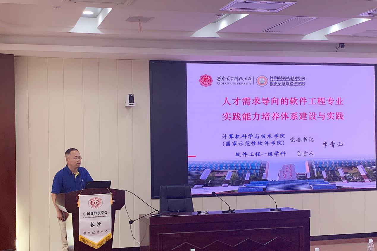 本次研讨会主题报告环节,CCF软件工程专委会主任、南京大学李宣东教授,CCF软件工程专委会常务委员、中国科学院大学魏峻教授、武汉大学应时教授、国防科技大学毛新军教授等专家学者分别就新形式下软件工程人才实践能力培养及教学实践分享了最新的研究成果和实践经验,军事科学院、华为、百度和微众银行等企事业单位技术专家从软件工程技术人才需求角度分析了当前面临的挑战。李青山教授围绕应用型软件工程人才培养目标,结合教育部实践育人体系建设要求,介绍了西电软件工程专业人才培养模式的创新和特色,突出爱国奉献价值引领、贯通专业实践能力培养体系、以社会人才需求为导向,全方位提升毕业生实践能力和水平。在此基础上,他说明了必赢官网软件工程专业人才培养体系相关实践以及所取得的成效。