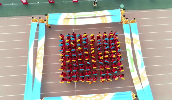 学生方阵由116名同学组成,前后各8名同学穿黄色服装列成两排,中间100名穿红色服装的同学构成10x10的队列。方阵表演由数字倒计时开始,计科学子通过重新演绎北京奥运会经典场景,向奥林匹克体育精神致敬;同学们通过快速准确变化手中的彩色扇子,构成了西电必赢242net官网首字母XDCST,整齐划一的口号响彻运动场:青春无畏,逐梦扬威,团结拼搏,争创佳绩!随后,方阵前后16位同学展开横幅构成一个巨大的计科院院徽图案,此时,中间同学们迅速跑动紧紧围成一团,一名女同学手持火炬走向红色方阵点燃圆形队列,瞬时队列化为熊熊燃烧的火焰,象征着西电计科学子传承红色基因、勇于拼搏奋进的精神。方阵表演创意十足、寓意丰富,赢得了在场观众的阵阵喝彩。