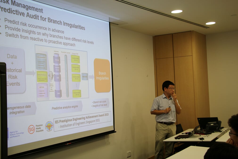 1月22日下午,不顾旅途劳累,同学们来到了新加坡科技研究局(Agency for Science, Technology and Research, A*STAR),由新加坡科技研究局资讯通信研究院高级科学家Dong Minghui博士先向同学们介绍了A*STAR的各个部门,包括BMRC、JCO、SERC和ETPL以及SERC等的研究方向,随后董博士给同学们做了“Speech Processing  Platform:AcousticModel,Lecxical,Machine Translation,               Dialogue Technology, Meeting Recognition and Summarization”的报告,深入浅出地介绍了智能语音交互技术、机器翻译技术、自动对话技术和自动会议语音识别与摘要技术及其发展现状与实际应用。董博士团队的孙研究员以Employee Analytics为例,演示了团队大数据分析的成果,使同学们对机器学习和深度学习有了初步的概念,对智能语音处理技术产生了极大的兴趣。