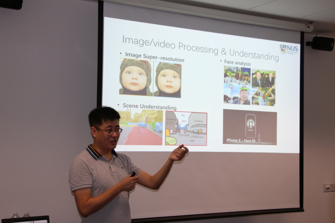 23日上午,在新加坡国立大学工程学院,新加坡国立大学电子与计算机工程系、机器学习与视觉实验室负责人冯佳时(Feng Jiashi)教授向同学们做了“Deep Learning for Visual Understanding”的报告,带来了深度学习及计算机视觉的原理和最新研究进展,详细讲解了两者的工作原理和应用现状与深度学习技术在人脸识别、深度图像超分辨率(Deep Image Super-Resolution)、图像去雨滴、图像去雾、图像去雾霾、超限人脸识别、人脸去遮挡与人脸年龄识别等方面的研究成果,并对其研究成果进行了演示,这些神奇的成果深深地吸引了同学们的好奇心,激发了大家对科学研究的兴趣。