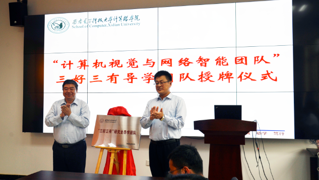 5月4日,计算机学院 “计算机视觉与网络智能团队”在北校区主楼二区319举行“三好三有研究生导学团队”挂牌仪式。学校党委副书记杨银堂教授,研究生院学生工作部部长秦荣、计算机学院副院长王卫东、团队负责人苗启广和团队师生共40余人出席。揭牌仪式由苗启广教授主持。
