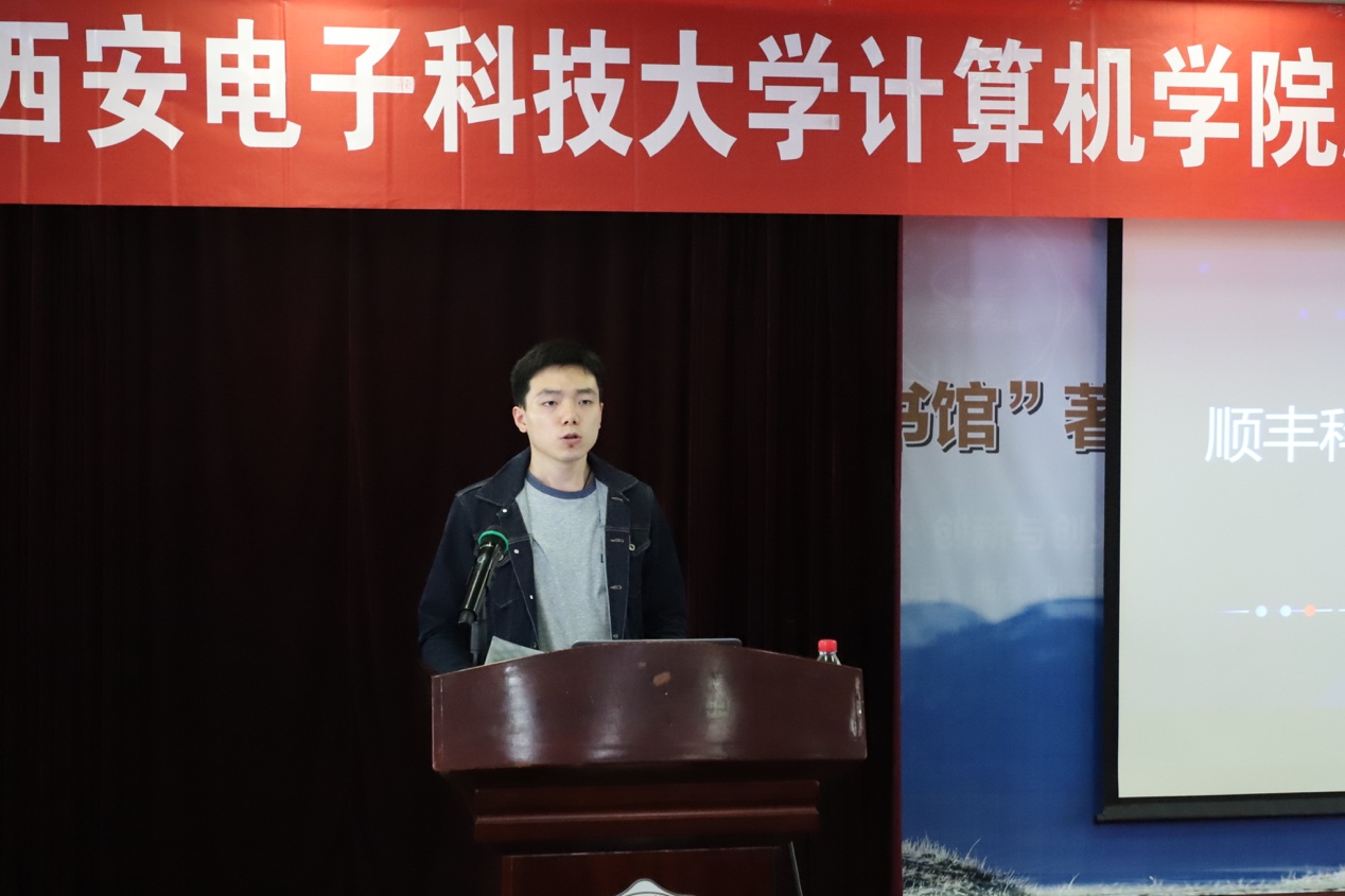 2016级研究生李强同学代表获奖者致辞,他感谢了顺丰科技对学院学生工作的支持和对学生科研的资助,并指出学生要融入社会,贴近企业,为社会的发展贡献自己的力量。