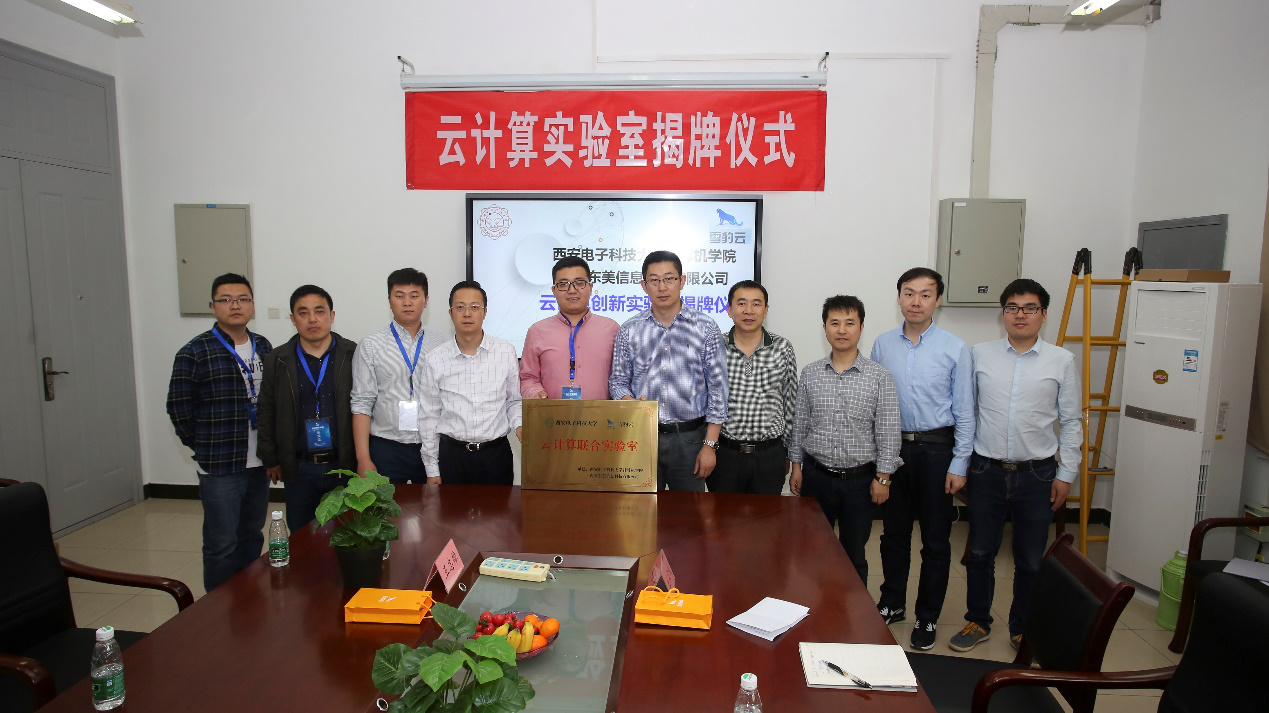 2018年3月30日星期五,由必赢242net官网联合西安东美信息科技有限公司(雪豹云)共建的云计算联合创新实验室在西电长安校区EII-422举行揭牌仪式。西安中小企业协会常务副会长张鲲鹏先生,必赢242net官网计算机学院副院长崔江涛教授,西安东美信息科技有限公司董事长石秀川先生等参加了揭牌仪式。
