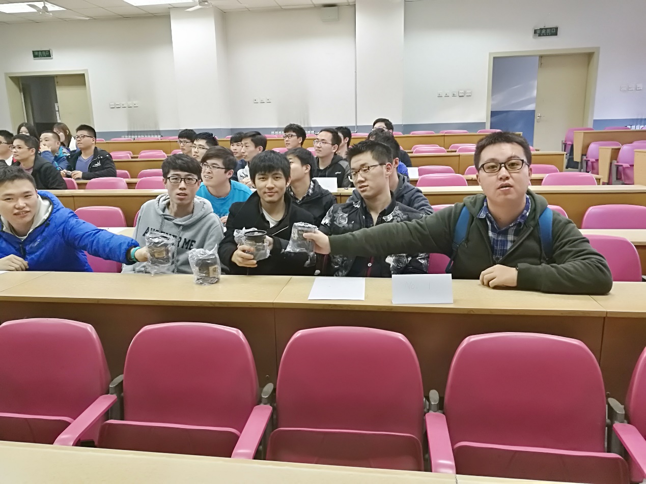 通过报名和筛选,25日下午三点,一共有九队选手在在教学楼J201参加了本次知识竞赛。答题开始之前,每队都介绍了自己队名的由来,同学们诙谐的解释让现场气氛达到了高潮。竞赛一共有三轮,以抽签的方式决定队伍编号,以小队为单位展开比拼,竞赛刚一开始就呈现出了激烈竞争的局面,同学们积极参与,不仅表现出了随机应变的能力,更体现了团队之间的默契配合。落后的队伍也并不气馁,再接再厉,勇往直前。第一轮答题结束之后,第九队“6哇6队”无缘第二轮,剩余比分相同的小队为晋级第二轮进入了加时赛阶段。在加时赛阶段,各个小队,你追我赶,不相上下,最后,第一队 “凛冬队”和第四队“答得全队”因微弱的差距无缘第二轮。最后经过两轮的角逐, 第二队“17五人组队”、 第三队“赵秦孙李队”和第六队“师徒五人去取经队”获得了本次竞赛的三等奖;第五队“西红士队”和“搞事情队”获得了本次竞赛的二等奖;第七组“黑化肥发黑会挥发队”技压群雄获得了本次竞赛的一等奖。最后,主持人为获奖同学颁发了获奖证书并为同学们合影留念,竞赛在一片欢声笑语中结束了。