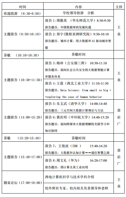本次研讨会围绕大数据共性关键技术,如大数据生态与系统、大规模并行数据库、流式计算与内存计算模式、大数据分析调度与优化、大数据知识图谱、大数据智能挖掘处理算法、大数据可视化、大数据安全与隐私保护、大数据分布式计算与深度学习、智能视觉大数据、生物大数据挖掘等核心内容,邀请国内外高等院校、研究院所和知名互联网企业等大数据领域知名专家与学者到会,通过主题报告、圆桌论坛(Panel)和交流沙龙等形式,组织校内外师生共同进行深入探讨和交流,分享大数据分析领域的理论研究和核心技术新进展,促进必赢官网大数据相关学科领域更好地建设和发展,扩大必赢官网“计算机科学与技术”一流学科的知名度和影响力。