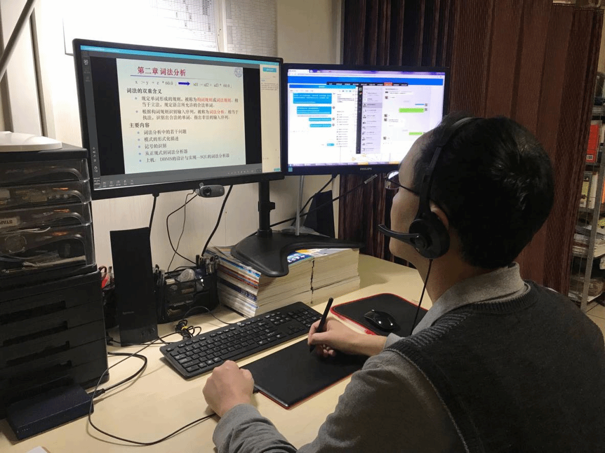 王小兵老师本学期主讲大三“编译原理”,该课程被往届学生誉为“天书中的天书”。虽然讲授“编译原理”课程已经了15年了,但是面对全新的线上教学模式,王小兵老师觉得需要改变传统的教学思维,提前做好各种准备,以应对可能发生的不同情况。