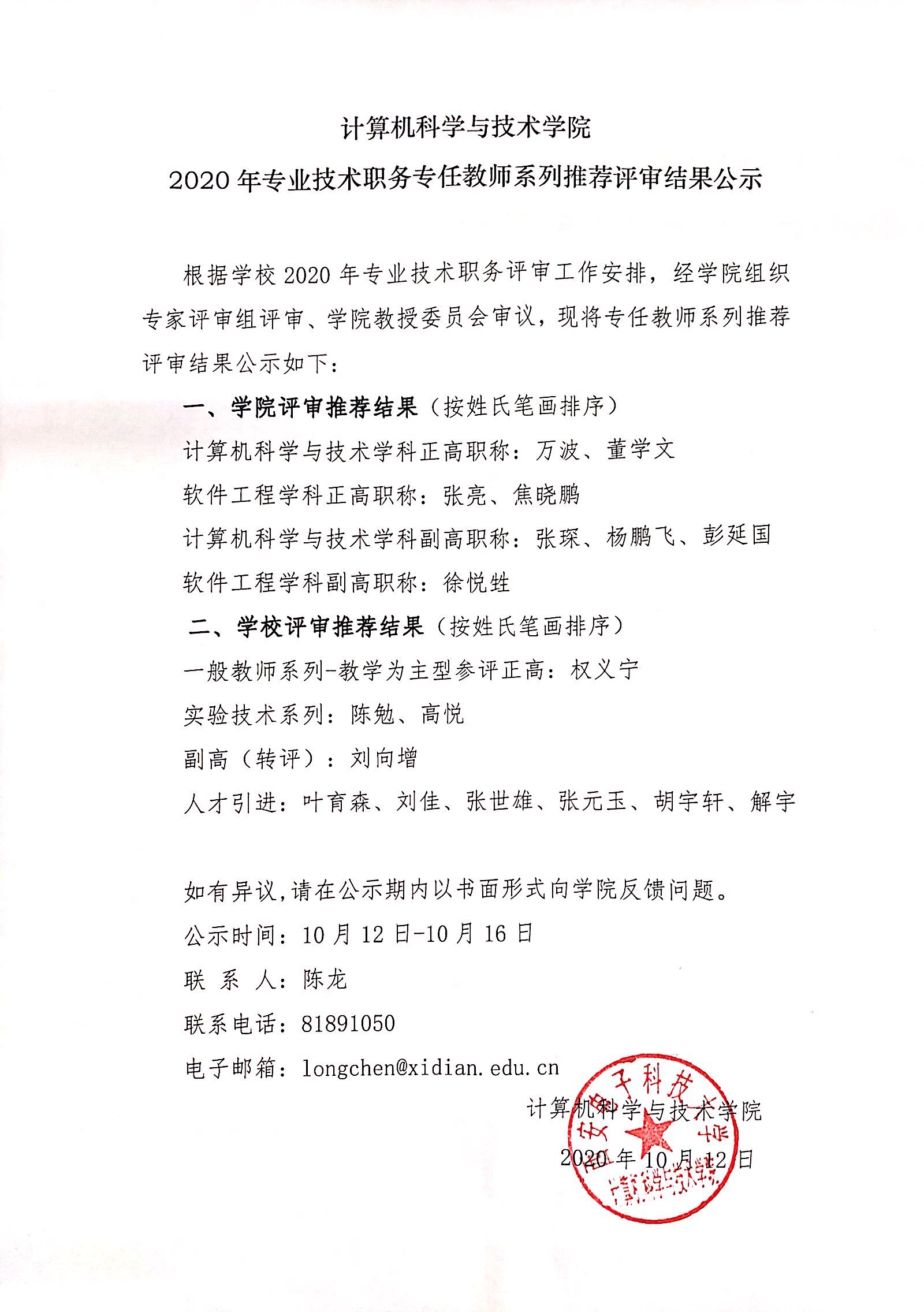 必赢242net官网2020年专业技术职务专任教师系列推荐评审结果公示