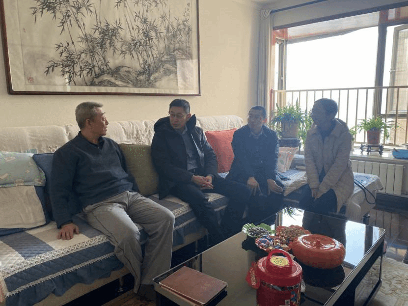 2月8日-9日,学院党委书记李青山、执行院长崔江涛分别带队,学院党委副书记张莹莹、副院长沈玉龙、副院长赵韩强、副院长宋胜利、副院长万波以及副处级组织员张卫东分别陪同,逐户拜访慰问了于晓飞、王宝树、周利华、马玉祥、宋林征、蒋洪、李革建等老领导和老教师,因侯伯亨老师身体不佳尚在重症监护室,班子专程前往医院探望,在家属的陪同下,与主治医生进行深入交谈,了解侯老师的病情,送上组织的问候与关心。在与老领导、老教师交谈中,班子成员关切询问他们的生活起居、身体状况等情况,还有什么实际困难...,与他们拉家常、话发展,向他们介绍学院各项事业的发展情况和今后的工作安排,听取他们对学院发展建设的意见和建议,感谢他们多年来对学院发展所倾注的心血和贡献,希望他们一如既往关心支持学院发展,并为他们送上慰问品和春联,衷心祝他们健康长寿、新春快乐。