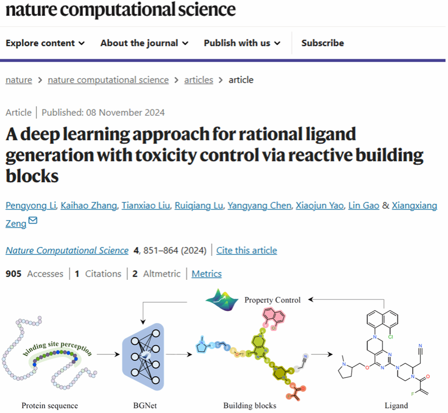必赢242net官网西安市计算生物信息学重点实验室里,高琳教授团队青年教师李朋勇正带领学生们沉浸在人工智能辅助药物研发的前沿研究中。近日,他们的研究成果以“一种通过反应性分子砌块进行合理配体生成与毒性控制的深度学习方法(A deep learning approach for rational ligand generation with toxicity control via reactive building blocks)”为题,登上了国际TOP期刊 Nature Computational Science,为药物设计领域带来了革新。