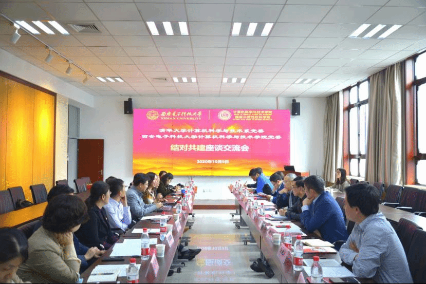 (通讯员 同榛)为切实提升基层党建水平,探索基层党建新模式,2020年10月9日上午,学院党委与第二批“全国党建工作标杆院系”培育创建单位——清华大学计算机科学与技术系党委在西电北校区主楼二区319会议室举行结对共建座谈交流会暨党委结对共建揭牌仪式。