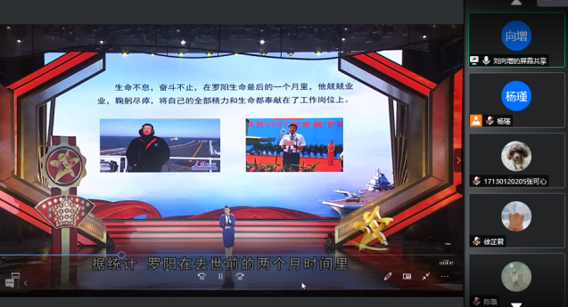 接着支部党员观看了嫦娥5号的探月飞天视频,以及罗阳、黄大年、南仁东等优秀共产党员的英雄事迹,他们具有无比坚定的理想信念,始终保持着共产党人的本色,为党的事业无限忠诚、尽心竭力,恪尽职守、鞠躬尽瘁。每一个片段都令人震撼,嫦娥5号发射成功的背后是无数科学家呕心沥血的付出,罗阳同志作为中航工业沈飞负责人,以国家之振兴为己任,以企业之发展为己任,兢兢业业,鞠躬尽瘁,将自己的全部精力和生命都奉献在了工作岗位上。地球物理学家黄大年放弃国外优越的条件毅然回到祖国,刻苦钻研、勇于创新,取得一系列的重大成果,填补了多项技术空白,用热血、生命践行了“振兴中华,乃我辈之责”的誓言。FAST工程首席科学家南仁东,历经二十余年带领团队在西南大山里翻山越岭,克服重重困难,修建了让世界瞩目的国之重器——“中国天眼”FAST望远镜,在世界的天文界镌刻了中国高度。