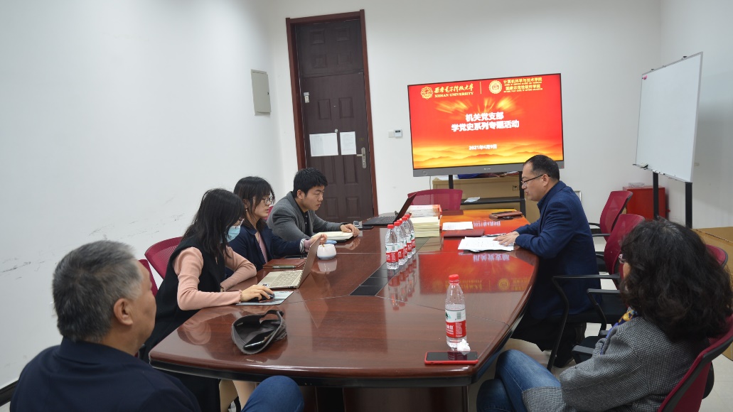 机关党支部书记赵韩强首先传达了习近平总书记在党史学习教育动员大会上的重要讲话精神,教育部党组书记、部长陈宝生同志在教育部召开党史学习教育动员大会的讲话精神,学校党委书记查显友同志在学校召开的党史学习教育动员大会上的讲话精神,带领全体党员深入学习了《必赢242net官网关于开展党史学习教育的实施方案》,从六个方面讲解了学习内容,分阶段安排了本年度学习安排,分层次讲述了五个方面重点任务。同时,与会同志集中学习了习近平总书记致厦门大学建校100周年的贺信。他谈到,“学党史”是贯穿2021全年工作的一项重大政治任务,机关支部党员同志要提高政治站位,统一思想,自觉学习习近平总书记重要讲话精神,全力学好党史、学习老一辈革命的英雄事迹,践行“全心全意为人民服务”的办学宗旨,以良好的精神风貌和扎实的工作态度迎接建党100周年和建校90周年。