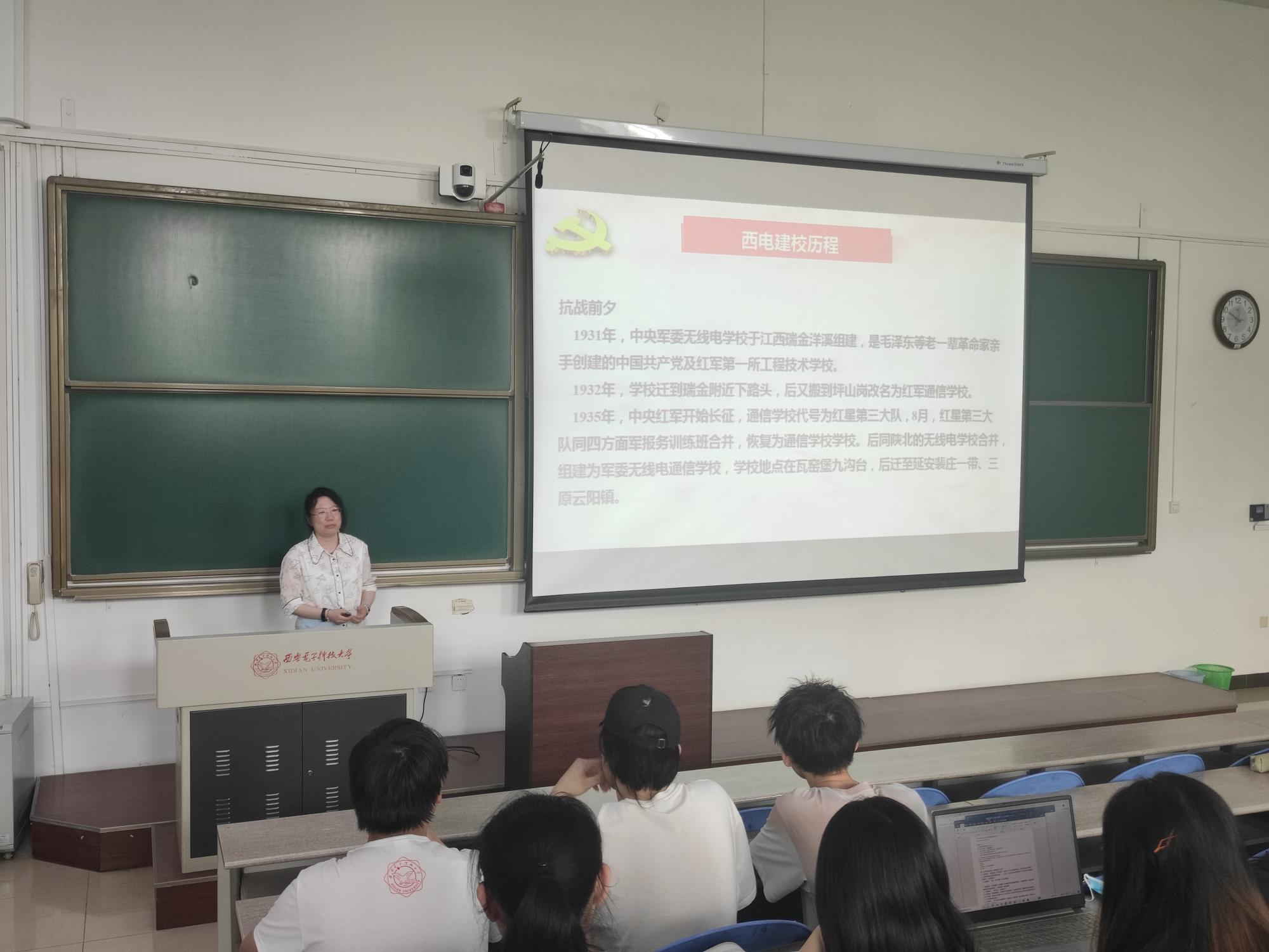 为更好地迎接建党一百周年,时刻谨记先辈们的非凡历程与实践经验,汲取先辈们的革命精神与力量,王璐书记通过党课讲解带领着同学们重温了西电的红色校史。西电由半部电台起家,跟随中央红军在瑞金、延安办学,在枪林弹雨之下对无线电通信技术进行研究与学习,为抗日战场与解放战场输送了数千名通信干部,立下了赫赫战功,让红色的电波传至大江南北。这是一段让每一个西电人都耳熟能详并十分骄傲的历史。除了回顾必赢官网建校历程外,王璐书记还着重强调,希望同学们在学习校史的同时,时刻将毛主席为西电所题的“全心全意为人民服务”铭记于心,担当起一个新时代青年、一个党员应担的责任,全心全意为人民服务,做一名合格的西电人。