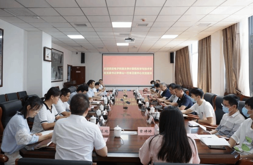 卫星中心党总支书记、副主任刘社虎对西电必赢242net官网党委书记李青山一行的到来表示欢迎。他详细介绍了卫星中心党总支党建工作的创新举措,希望能将校企支部结对共建、党建业务深度融合引领落到实处,通过科研合作、技术交流、人才交流为两个单位的共同发展做出贡献。