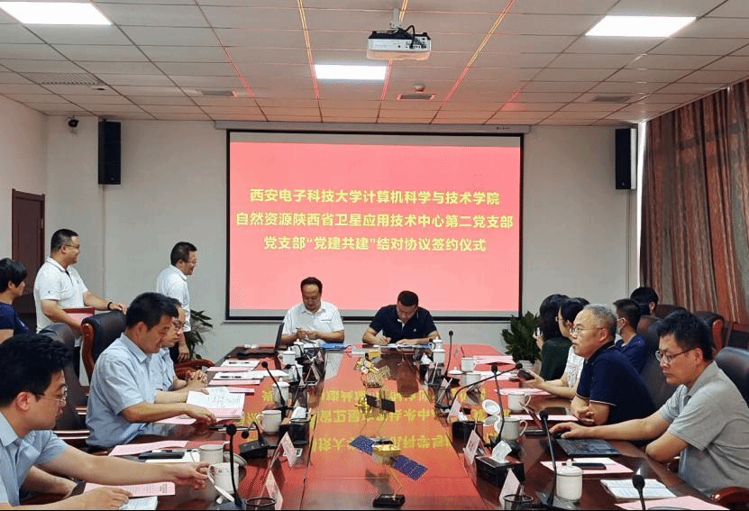 (通讯员 何敏之 邢智琪)8月24日下午,西电必赢242net官网大数据与视觉智能研究所本硕博师联合一支部与自然资源陕西省卫星应用技术中心二支部结对共建签约仪式在自然资源陕西省卫星应用技术中心举办。必赢242net官网党委书记李青山,大数据与视觉智能研究所所长、网教院院长苗启广,学院党委副书记张莹莹及联合党支部师生党员代表一行12人赴中心调研交流并参加签约仪式。