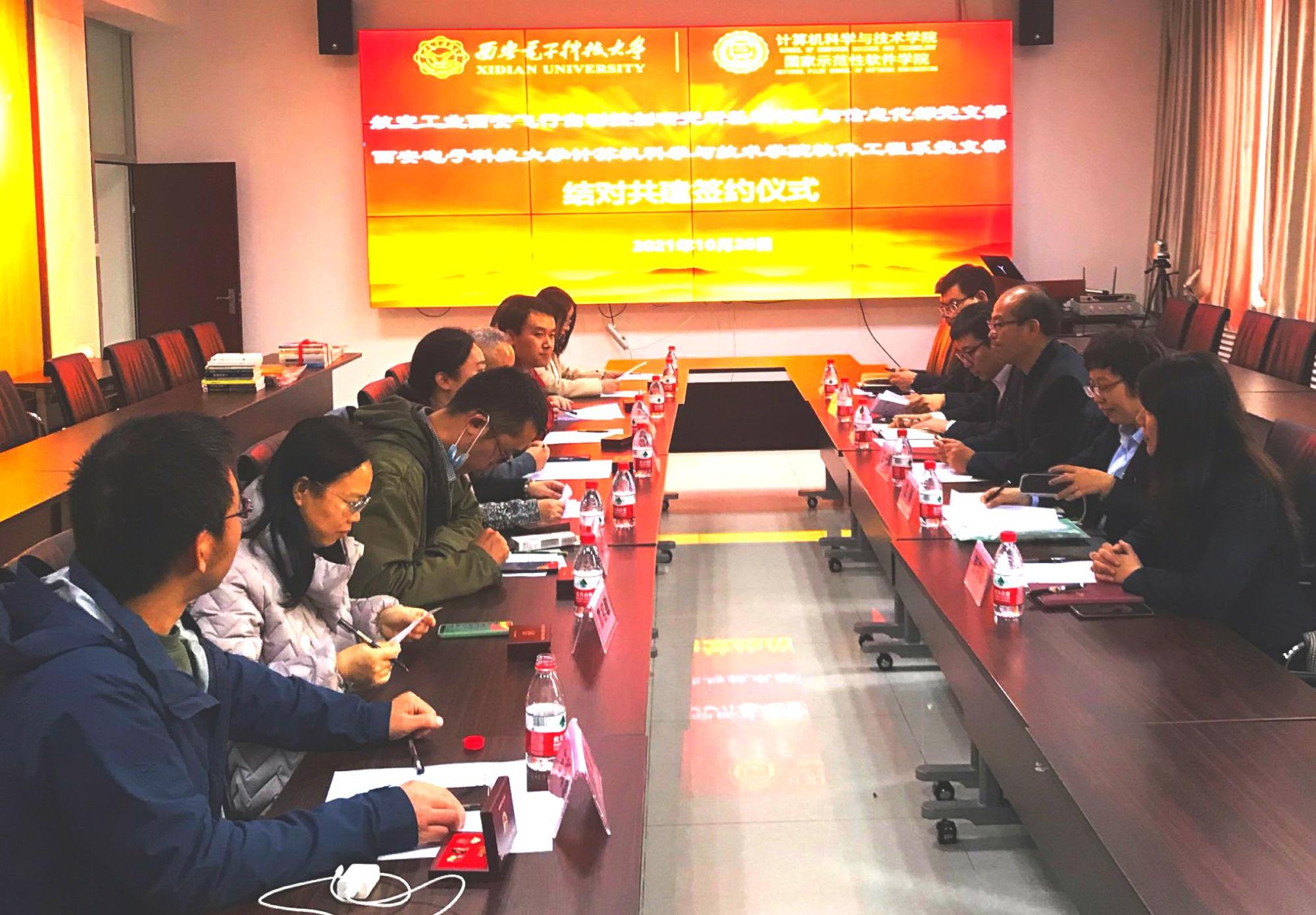 (通讯员 覃桂敏)为进一步深化党史学习教育,落实“我为师生办实事“相关要求,为教师搭建对外交流协作平台,必赢242net官网软件工程系党支部和航空工业西安飞行自动控制研究所基础管理与信息化部党支部于2021年10月28日举行了党支部结对共建启动仪式。航空工业西安飞行自动控制研究所党委书记王东辉携基础管理与信息化党支部党员代表来院参会。软件工程系党支部联系指导的党委委员、计科院党委书记李青山、软件工程系党支部支委与党员代表参加了本次活动,软件工程系党支部书记褚华主持了启动仪式。
