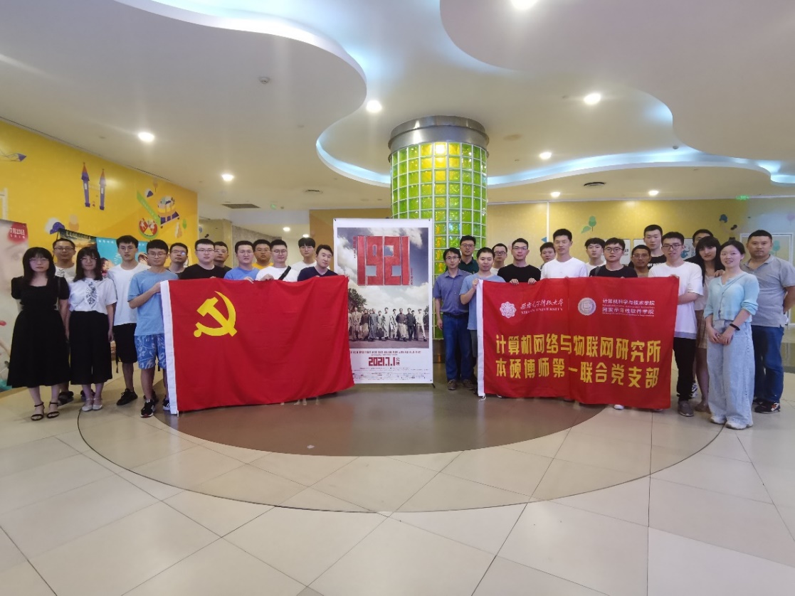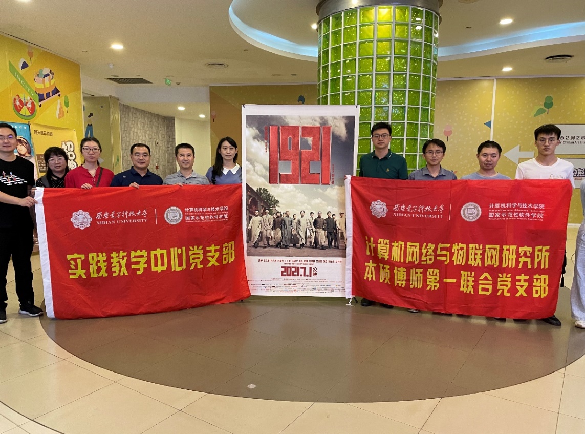 (通讯员 张瑜)为了庆祝中国共产党成立100周年,扎实推进党史学习教育走深走实,充分发挥党支部联建的优势互补作用,进一步提升党支部党建工作成效,创新党史学习教育形式,2021年7月1日,计算机网络与物联网研究所本硕博师第一联合党支部与实践教学中心党支部联合开展了党史学习主题观影活动,近40名师生们共同观看了红色电影《1921》,一起回顾追溯百年党史起点,汲取初心根源奋进力量。